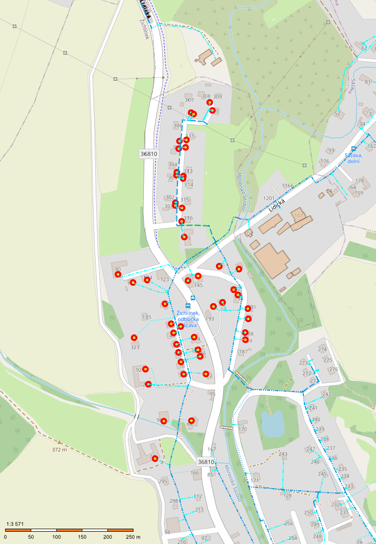 Odstávka vody bude v označených nemovitostech v přiložené situaci.